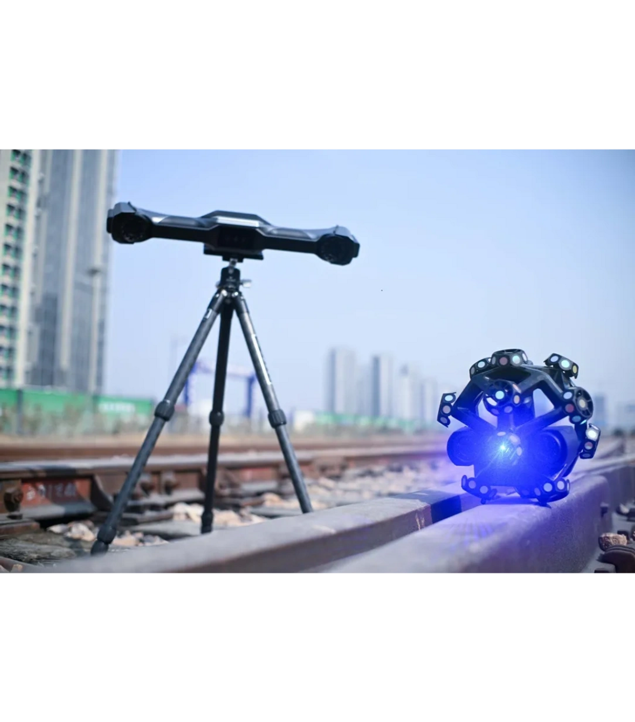 The FreeScan Trak Nova system from SHINING 3D uses a special type of technology called video-based photogrammetry. This means it can capture detailed measurements without needing special markers to be placed on the object.